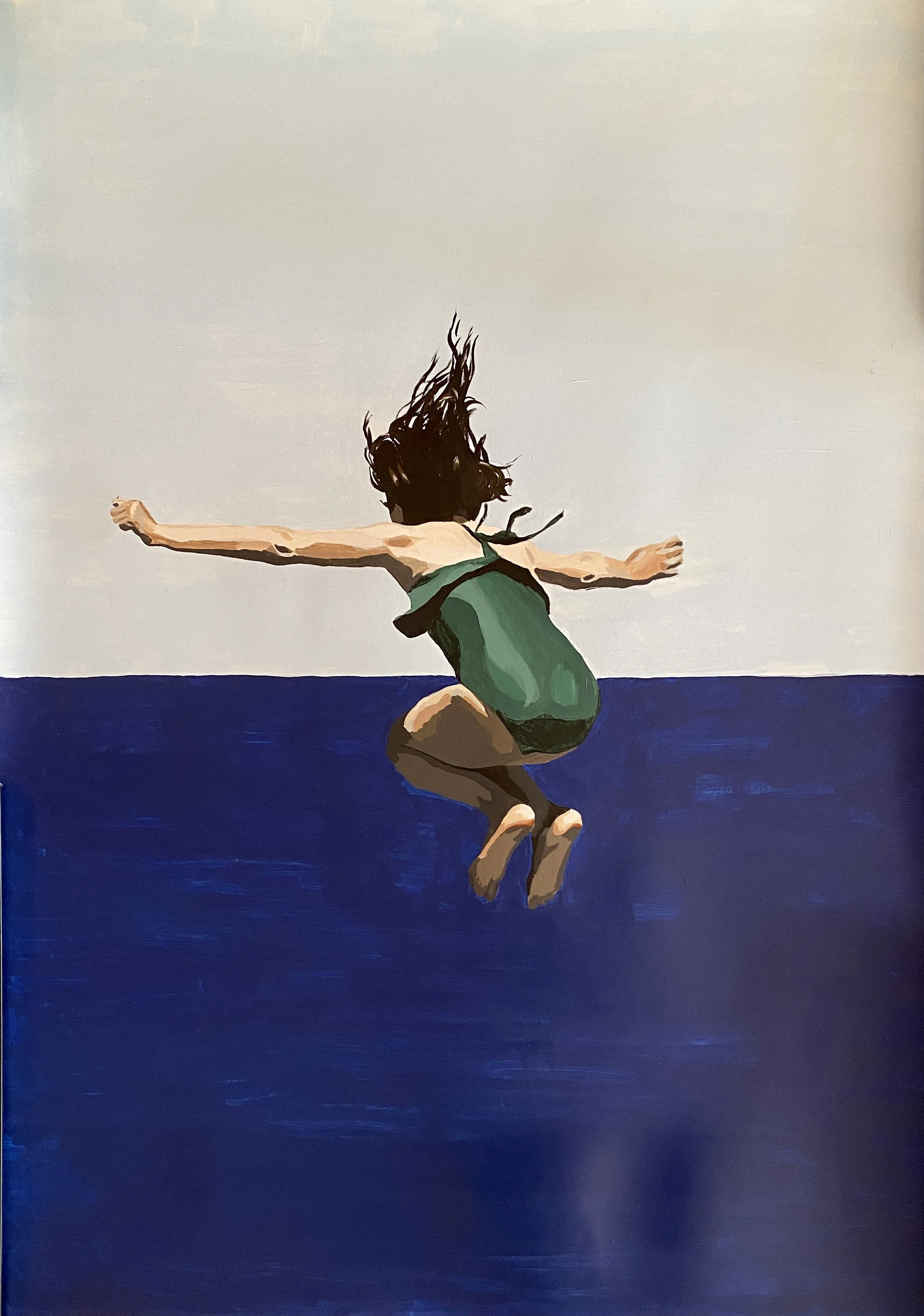 For this exhibition “D’abord la Mer” Faustine Badrichani looks towards the sea: the sea as a horizon, the sea as infinity, the sea as a way out. The exhibition is thought of as an invitation to escape from our confined lives, on the lookout for a long-coveted freedom. Faustine Badrichani's universe is sunny, dazzling, graphic and sensual. There is the light, hard as a stone, which enhances the colors, chisels shapes and contrasts. There is the warmth on these still pale bodies, standing out from the hot, chalky rock. There is this blue as a common thread : a signature blue, in which we want to dive. Bathed in sunshine, the women of Faustine Badrichani make us a promise: that of capturing the instants of these carefree moments typical of holidays. Women who escape the gaze, who for a summer time become anonymous and melt into the pleasure of the moment. The heat of the sun on the skin, the sudden urge to dive into the sea, the furtive need to put on a swimsuit strap. Moments of slowness and laziness as much as vigor. Faustine Babrichani stands out for her great creativity and plastic freedom, exploring ink, pastel, colored pencil and paint. The exhibition presents itself as a pleasurable dive into the teeming creativity of the artist's studio..